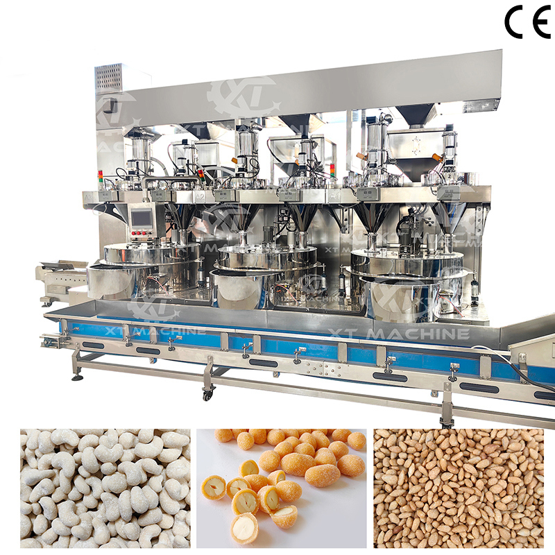 آلة طلاء ثلاثية المحطات ذات السعة الكبيرة الأوتوماتيكية بالكامل آلة طلاء الفول السوداني مع البابريكا للمكسرات والفاصوليا والطلاء