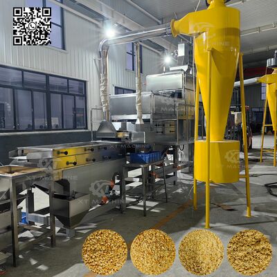 يبدأ نظام القطع المتقدم في مرحلتين عندما يتم تغذية الفول السوداني المقطوعة عبر ناقل عمودي. يتم أولاً تقطيع المواد إلى حبوب ضخمة بواسطة جهاز القطع الأولي ،ثم يتدفق إلى المرحلة الثانية لتصبح خليط الحباتمع المصفف الاهتزاز المدمج ، يتم فرز المواد المقطعة إلى 4 مواصفات موحدة ، تنقسم عادة إلى 5-8 شبكة ، 8-10 شبكة ، 10-12 شبكة ،مع مادة أقل من 12 شبكة تصل إلى نسيج مسحوق.