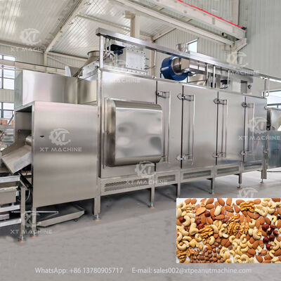 آلة تحميص المكسرات من نوع الحزام مع تحكم ذكي PLC وهيكل من الفولاذ المقاوم للصدأ